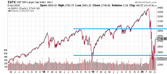 Ameriški borzni indeks S&P500 bo v naslednjih dneh oz. tednih poskušal prebiti pomembne odporne ravni med vrednostmi 2.600 in 2.900 točk. Če mu to ne uspe, bo seveda najprej na vrsti ponovno testiranje marčevskega dna pri vrednosti 2.200 točk. Nadaljevanje rasti indeksa S&P500 preko vrednosti 2.900 in celo nad 3.000 točk, pa bi znova vzpostavila precenjeno stanje, ki je karakteriziralo leto 2018 in 2019. Morda celo še bolj precenjeno, ker je sedaj zaradi škode povzročene z ustavitvijo globalnega gospodarstva in trgovine pričakovati, da bodo dobički podjetij vsaj nekaj let pod vrhovi, zabeleženimi leta 2018.